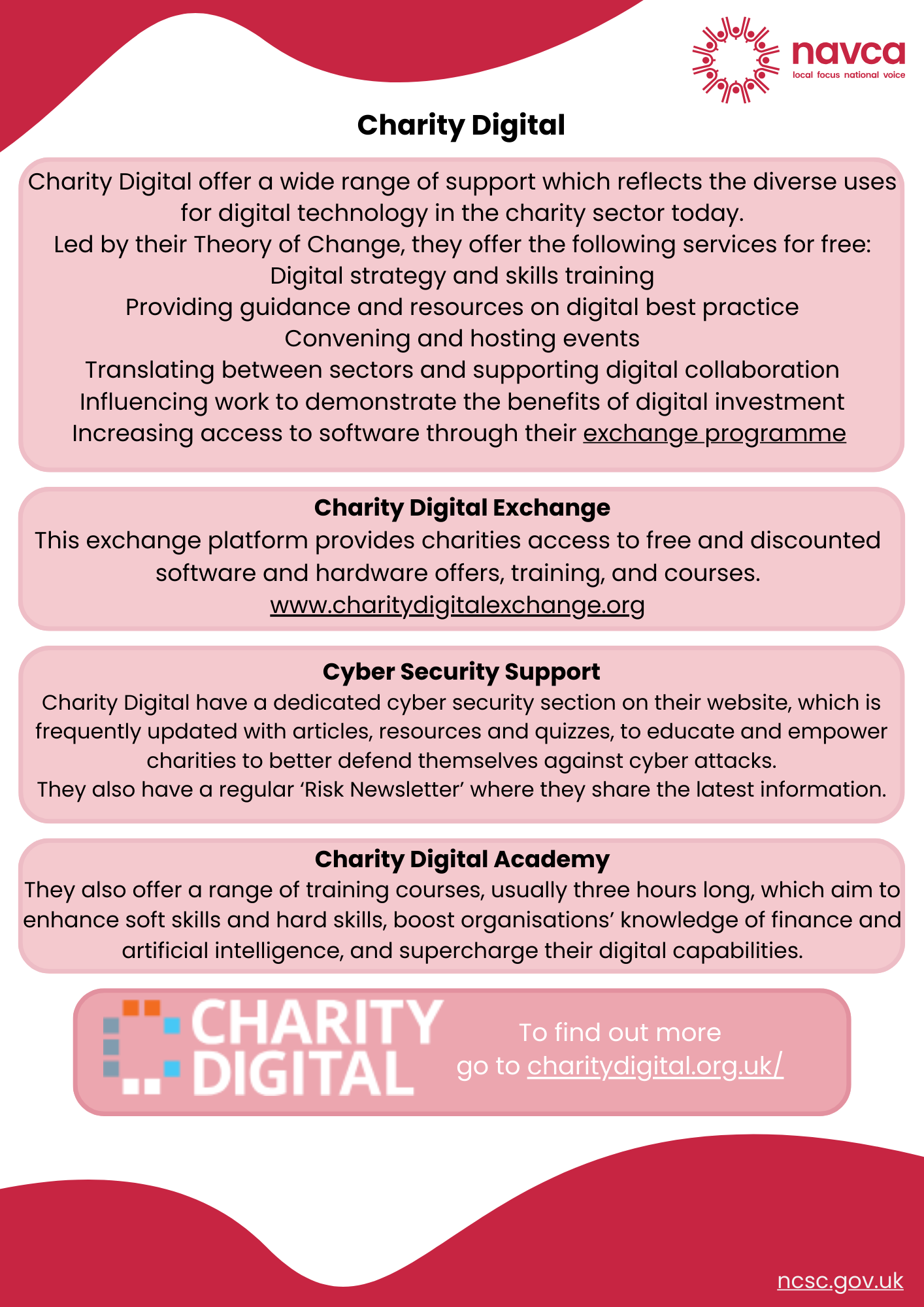 This resource pack has been created by NAVCA to follow on from our Train the Trainer scheme in partnership with the National Cyber Security Centre. Find out more about the resource collection here. PNG version for sharing on social media.